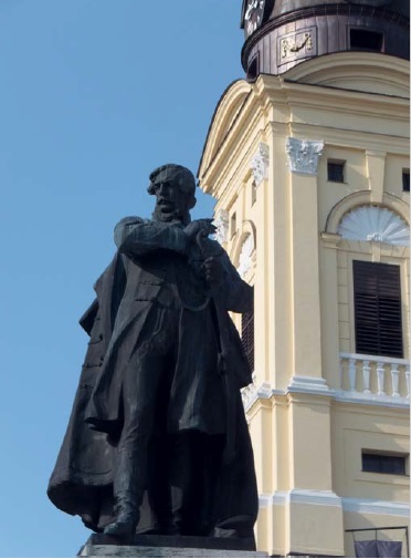 Statue of Lajos Kossuth outside the Great Church of Debrecen